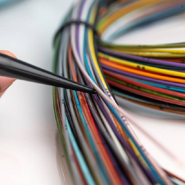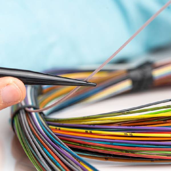 Hochschlagfester, aus nicht leitendem thermoplastischem Material hergestellter Spatel. Das Werkzeug hilft dabei, die empfindlichen Glasfasern in Spleißkassetten sicher zu sortieren.
