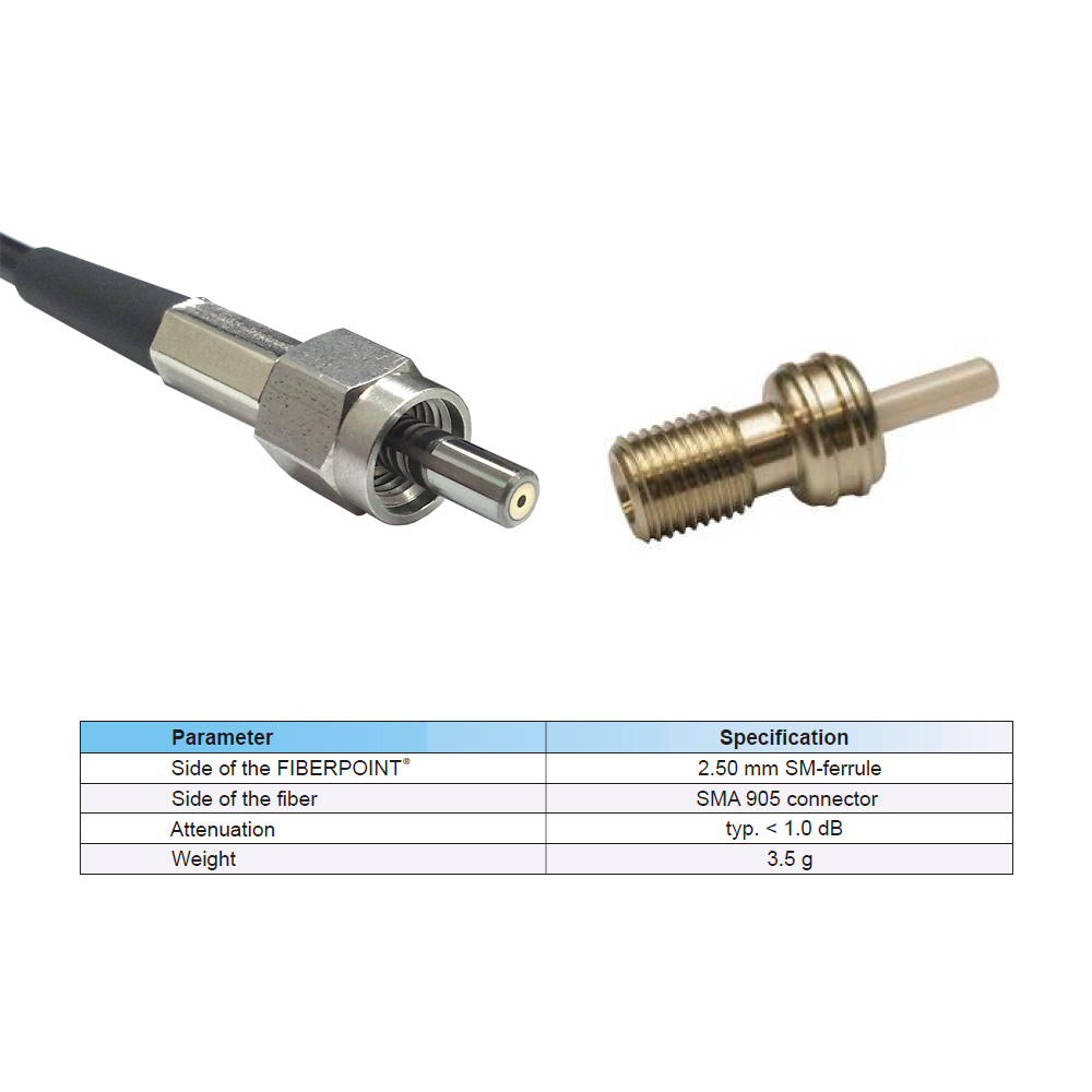 Passend für patentierte 2,50 mm FIBERPOINT Anschluss an SMA 905 Anschluss. Folglich können Sie beide gängigen Faserverbindertypen mit nur einem Faserfehlersuchgerät (Fiber Fault Locator) überprüfen.