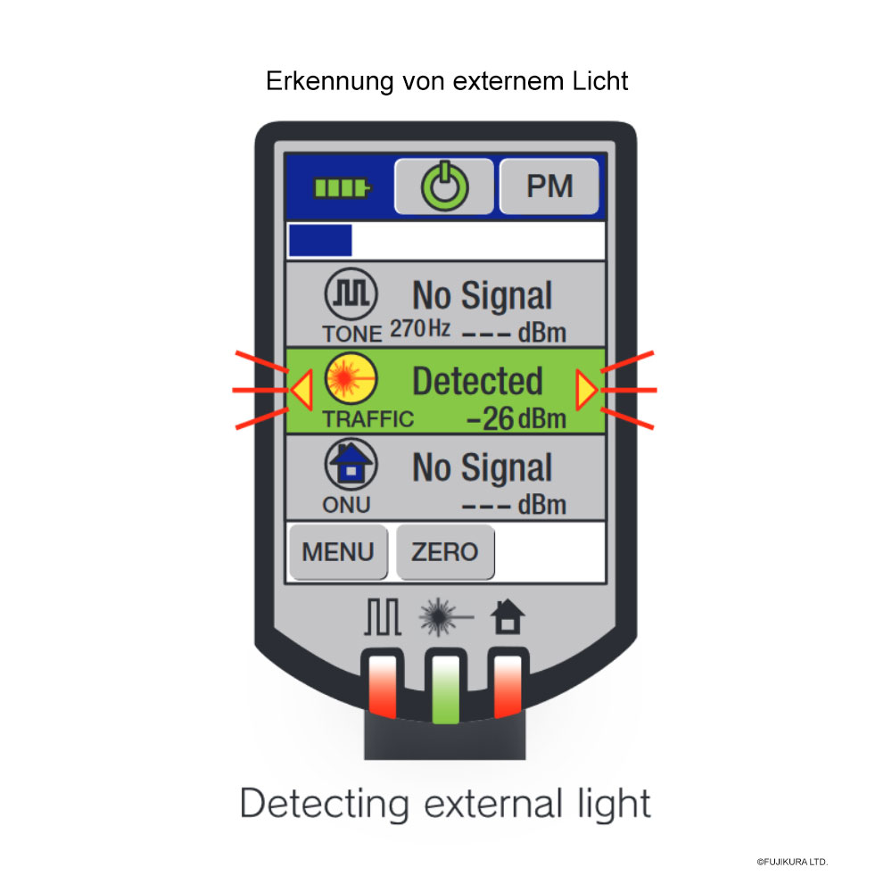 Diese Generation der Faseridentifizierer (fiber identifier) von Fujikura ist auf Grund ihrer besonderen Eigenschaften auch für die Detektion von Netzabschlusspunkten (ONU) und für biegeunempfindliche Fasern geeignet.
