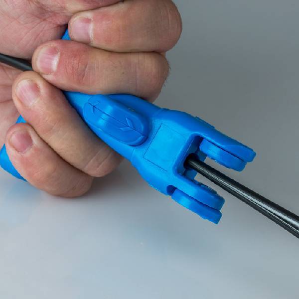 Patentiertes Schlitzwerkzeug zum Einschneiden von flachen Glasfaser Drop-Kabeln Speziell entwickelt für den FTTH-Installteur. Es vereinfacht das symetrische Aufschlitzen in der Mitte von Kabeln sowohl am Faserende, als auch an jeder anderen Stelle des Kables.