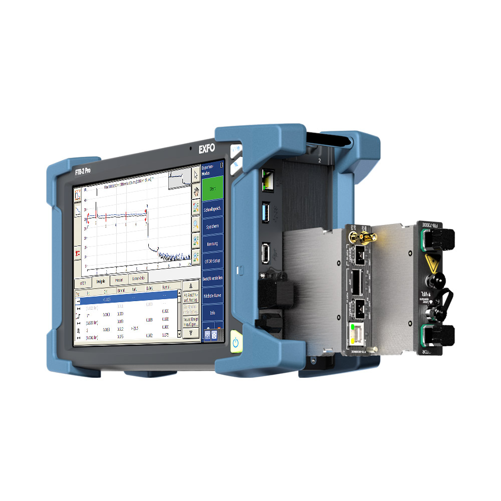 Ferner kann die Kompaktplattform bis zu zwei Single-Slot-Module bzw. ein 2-Slot-Modul aus der Serie aufnehmen, die auch in den Plattformen FTB-200/-500 zum Einsatz kommt. Es steht somit eine große Bandbreite geeigneter Module sowohl für die Glasfaserqualifizierung als auch für Transport-/Datacom-Tests (Glas/Kupfer) zur Verfügung. Lassen Sie sich bitte von uns bezüglich der Kompatibilität zu älteren Modulen beraten.