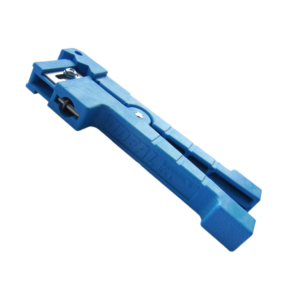 Der Hohladerschneider LTC-03 von IDEAL INDUSTRIES (die blaue Wäscheklammer) dient zum Absetzen von Bündeladern in Glasfaserkabeln sowie der Kabelmäntel von Patchkabeln mit 3,2-6,4 mm Durchmesser.