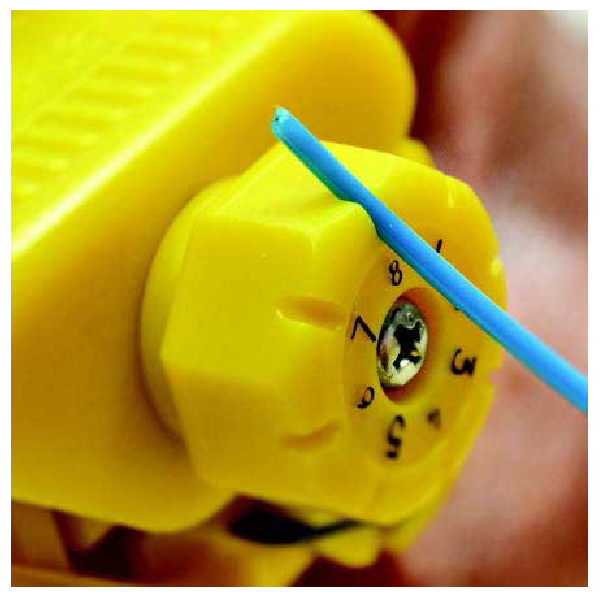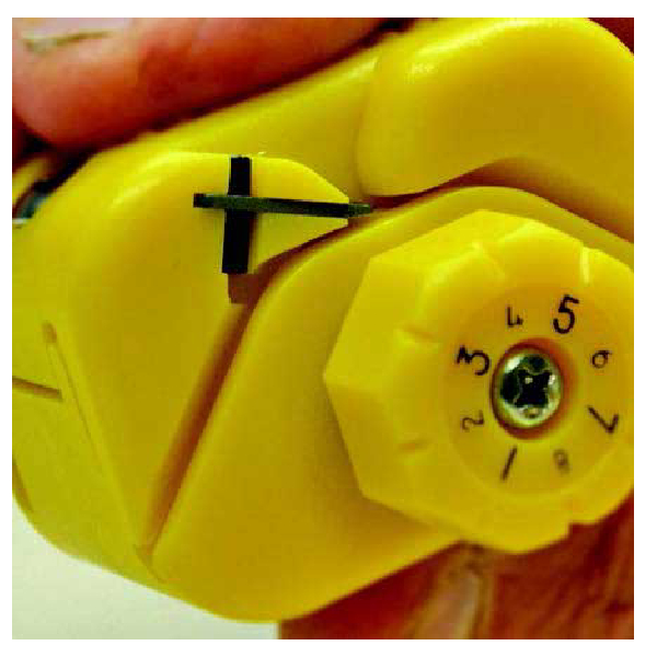 Das Tool besitzt 16 unterschiedliche Schneidpositionen für verschiedene Kabeldurchmesser. Welche Einstellung die Richtige ist, kann durch Einlegen in entsprechende Kerben mit vordefinierter Größe, abgelesen werden.