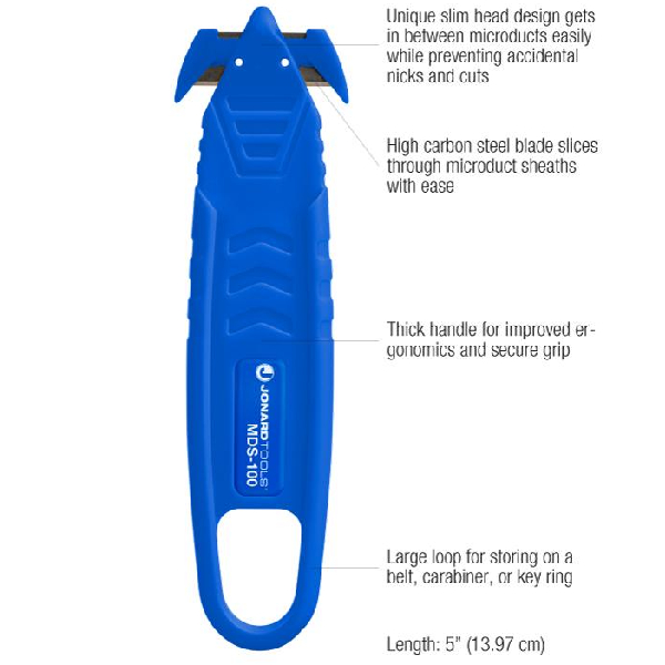 Das neue Schlitzwerkzeug von Jonard wird bei Mikrokabelrohrverbänden zum Aufschneiden des Außenmantels benutzt, um die innen liegenden Rohre freizulegen. Dank des schmalen Designs und der hochfesten Stahlklingen eignet es sich besonders für diese Aufagbe. Das schmale Design verhindert versehentliche Beschädigungen wie Kerben und Schnitte an den Mikrorohren und die Klingen soregn für einen leichten und sauberen Schnitt des Mantels. Die ergonomische Form liegt gut in der Hand und sorgt so für die sichere Führung des Werkzeugs.