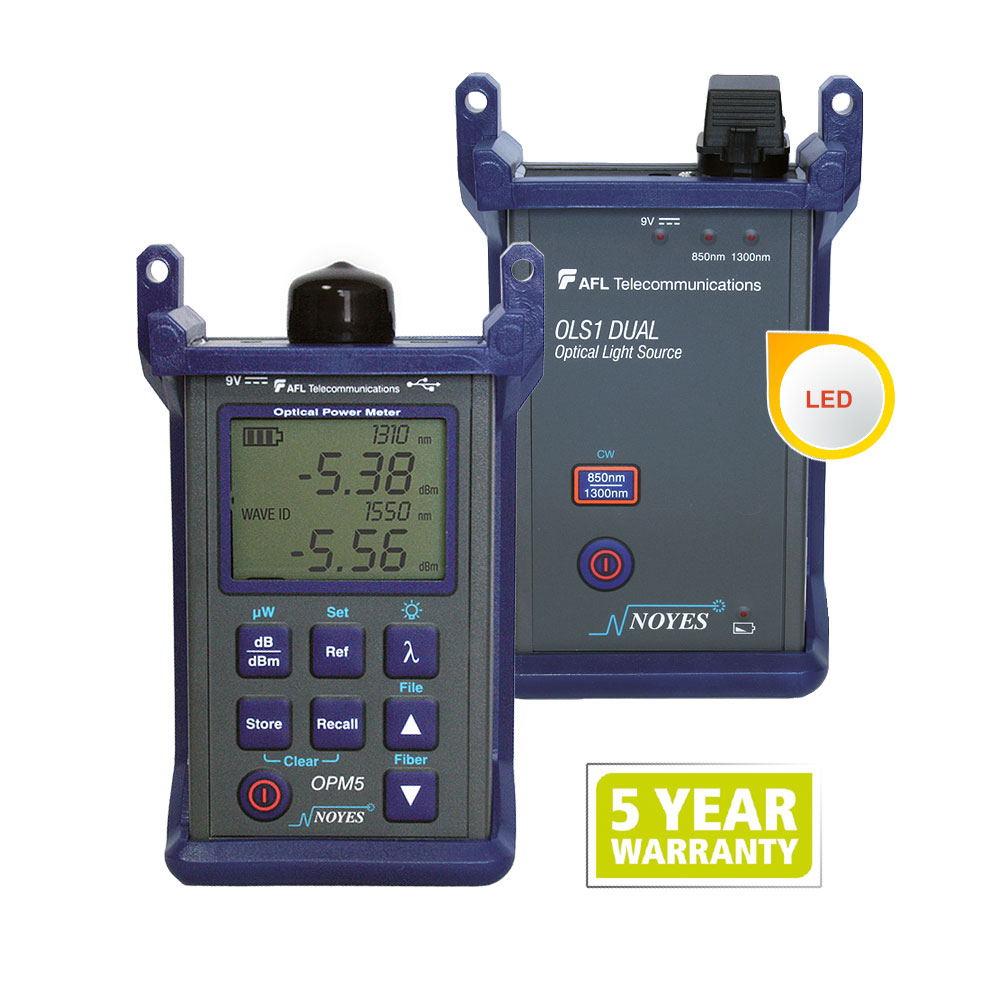 Dämpfungsmessgeräte-Set MLP5 für 850/1300nm aus AFL OLS1-Dual sowie AFL OPL5-2D. Wahlweise mit ST-/ SC-/ LC-/ FC-Adapter.