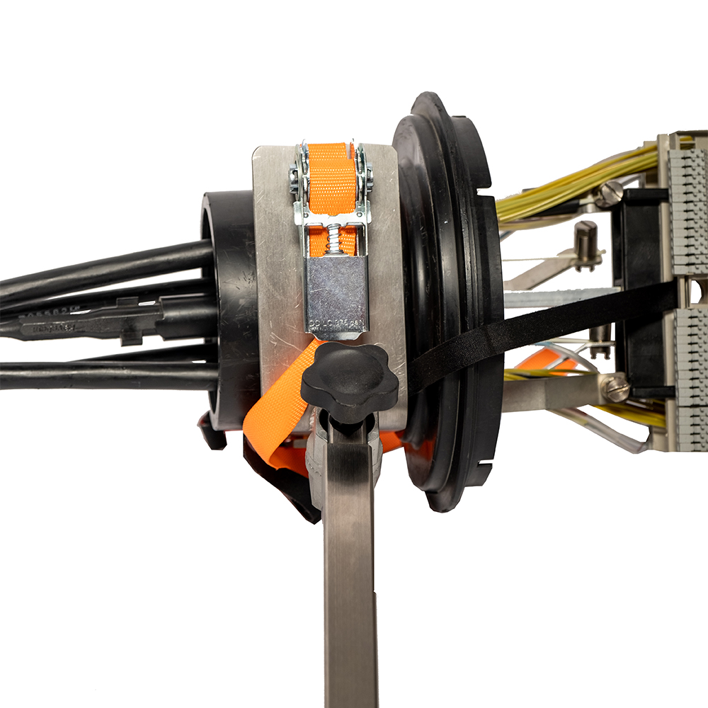 - Der Faser-Ablagebügel wird mitgeliefert. Er kann alternativ zum Abstützen schwerer Muffen genutzt werden.
