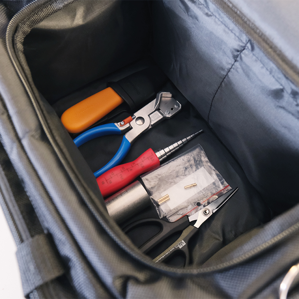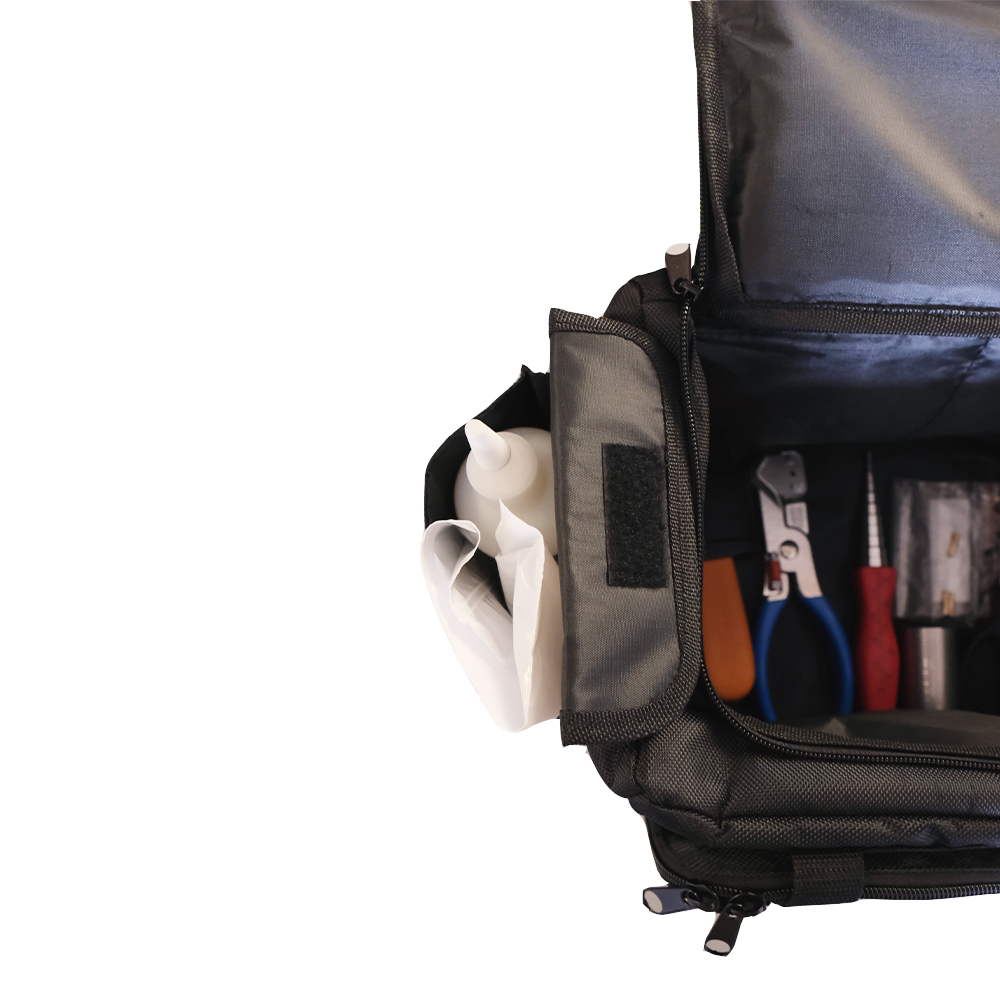 Abgestimmt auf unsere Einblasgeräte und ideal für die Netzebenen 3 und 4. Alles verpackt in dieser kompakten Tasche mit ausreichend Platz und vielen abgenäten Fächern für Ihre Ordnung. So vermeiden Sie lose Teile.