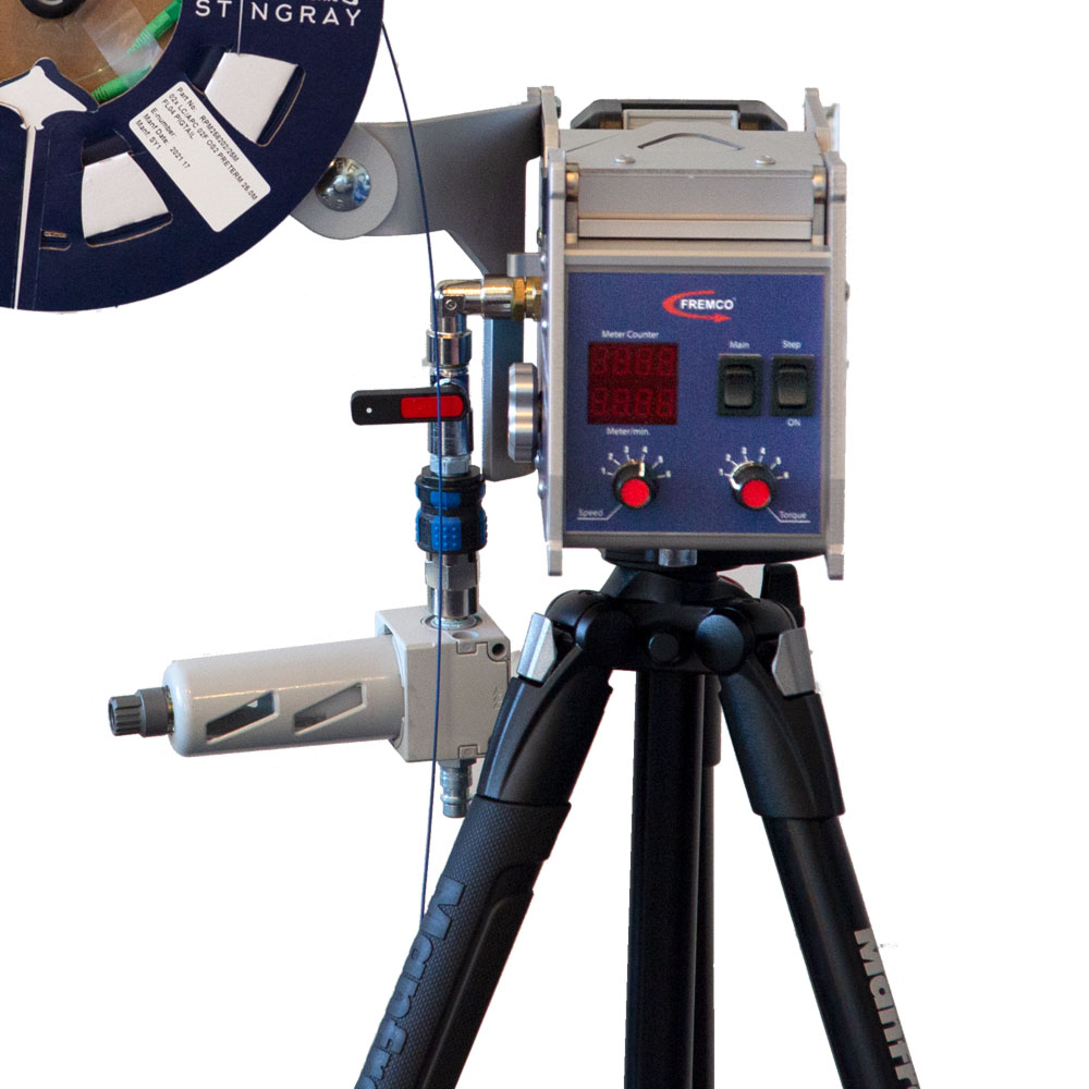 Professionelles Opternus Stativ aus Alu mit Schnellspann-Halterung, passend für die Fremco NanoFlow Max sowie für Fujikura Spleissgeräte, auch mit Worktray einsetzbar.