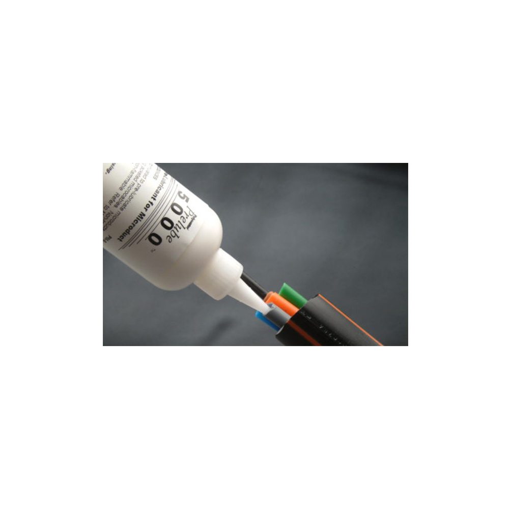 Polywater® Prelube 5000 ™ ist konzentrierter als Prelube 2000 ™. Es ist ein ideales Gleitmittel zum Einblasen von Mikrokabeln in Mikroröhrchen mit kleinem Durchmesser. Die niedrigere Viskosität ermöglicht eine praktische Anwendung in den Mikroröhrchen.