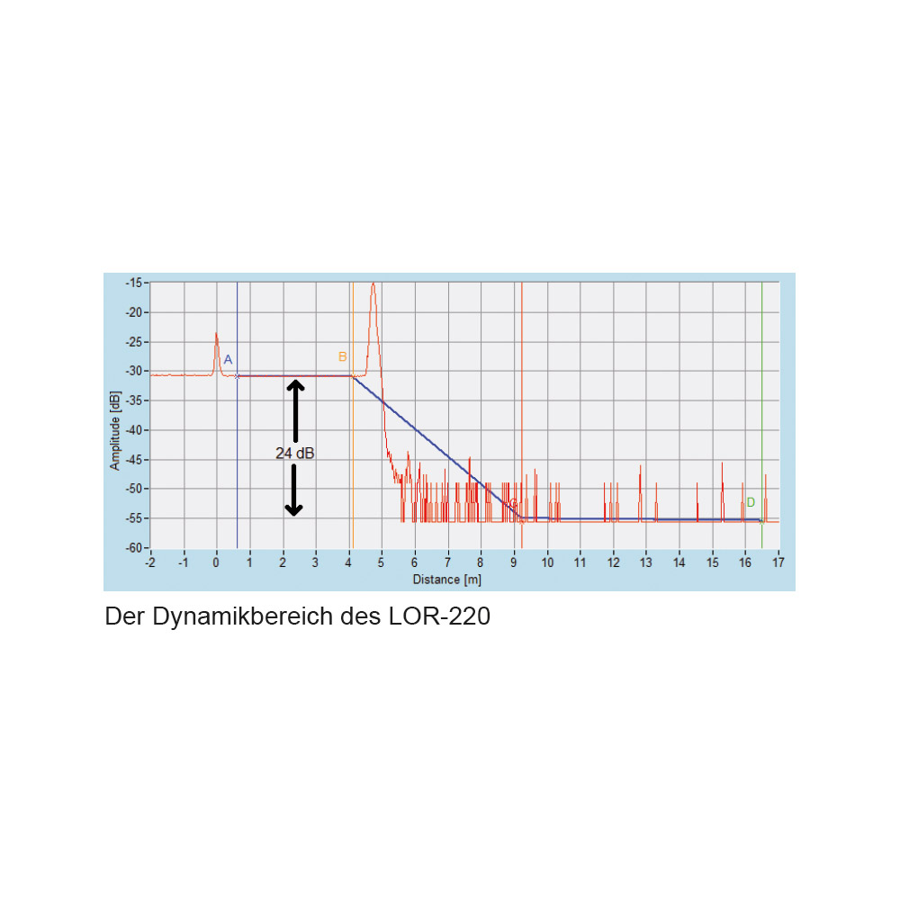 - Das Luciol LOR-200 ist im Vergleich mit einem Standard OTDR besonders hochauflösend und ermöglicht besonders kurze Totzonen beim Messen. Wichtig bei kurz aufeinanderfolgenden Ereignissen!