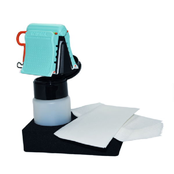 Die originalen WOWA-Wipes (Reinigungstücher) passen perfekt und können im Wipe-Clip deutlich länger verwendet werden als Tücher im herkömmlichen Reinigungsverfahren in der Hand.