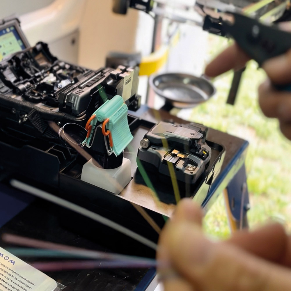 Für den Spleißprozess ist eine optimale Reinigung der Faserenden besonders wichtig. Sie verhindert z. B. „Blasenbildung“ in der gespleißten Faser!